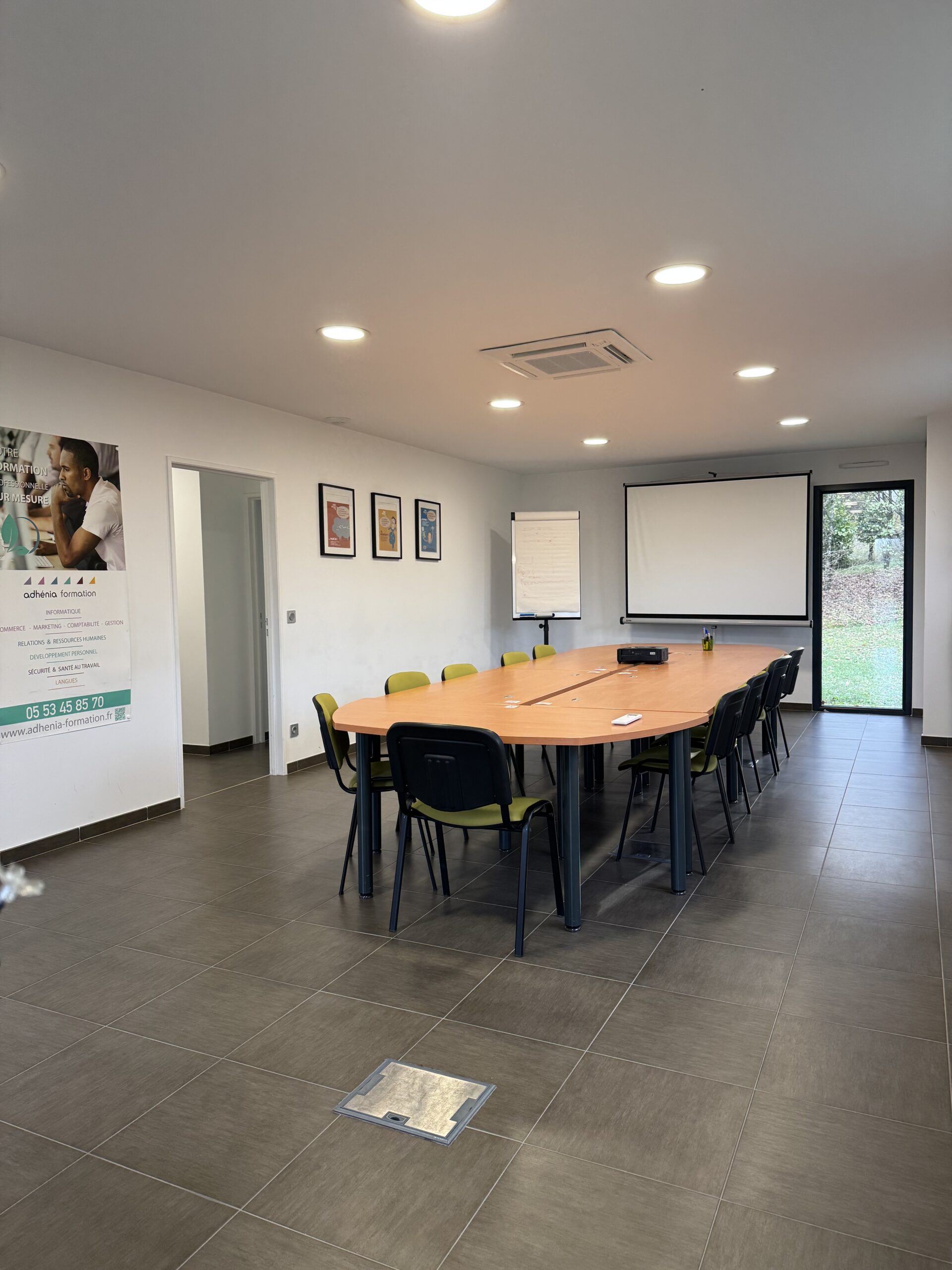 - Salle équipée de vidéo projecteurs écrans, paperboard.